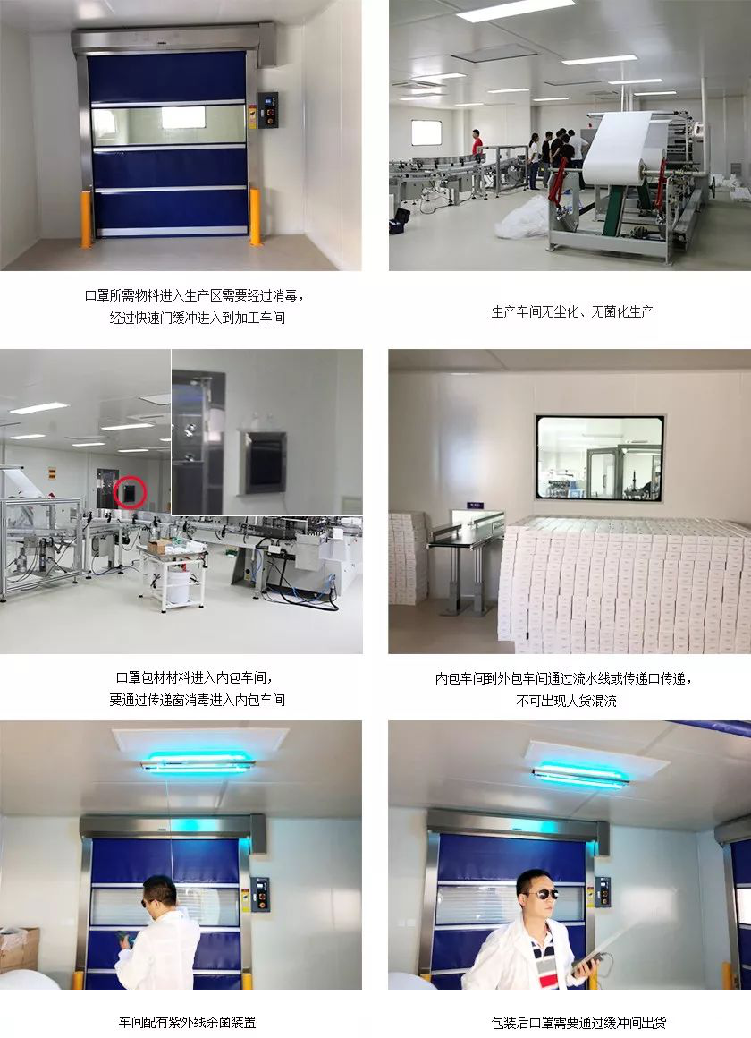(上图) 十万级洁净车间下生产口罩